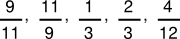 -21/3, -2/9, 3/7, 1, 1/11, dsb.